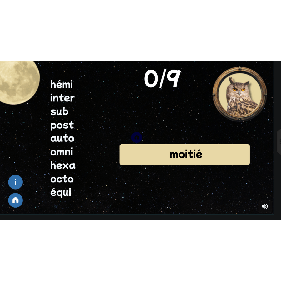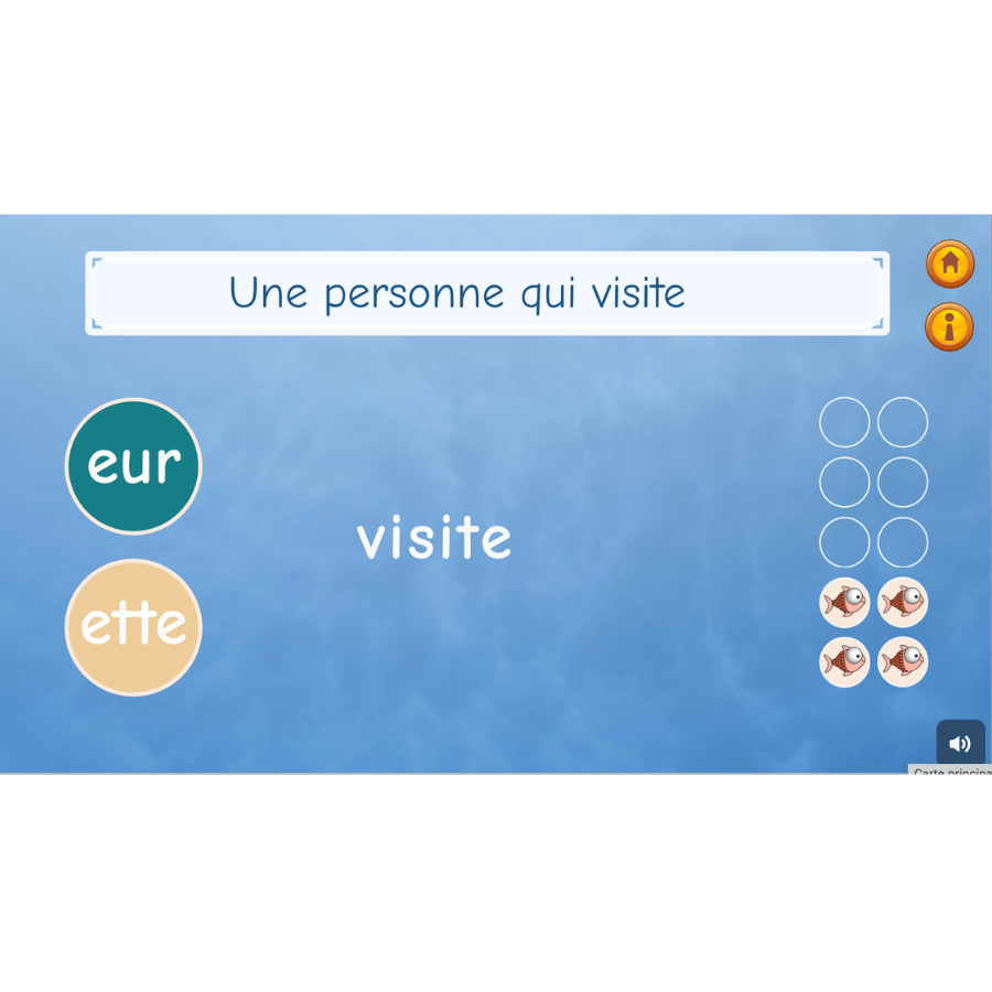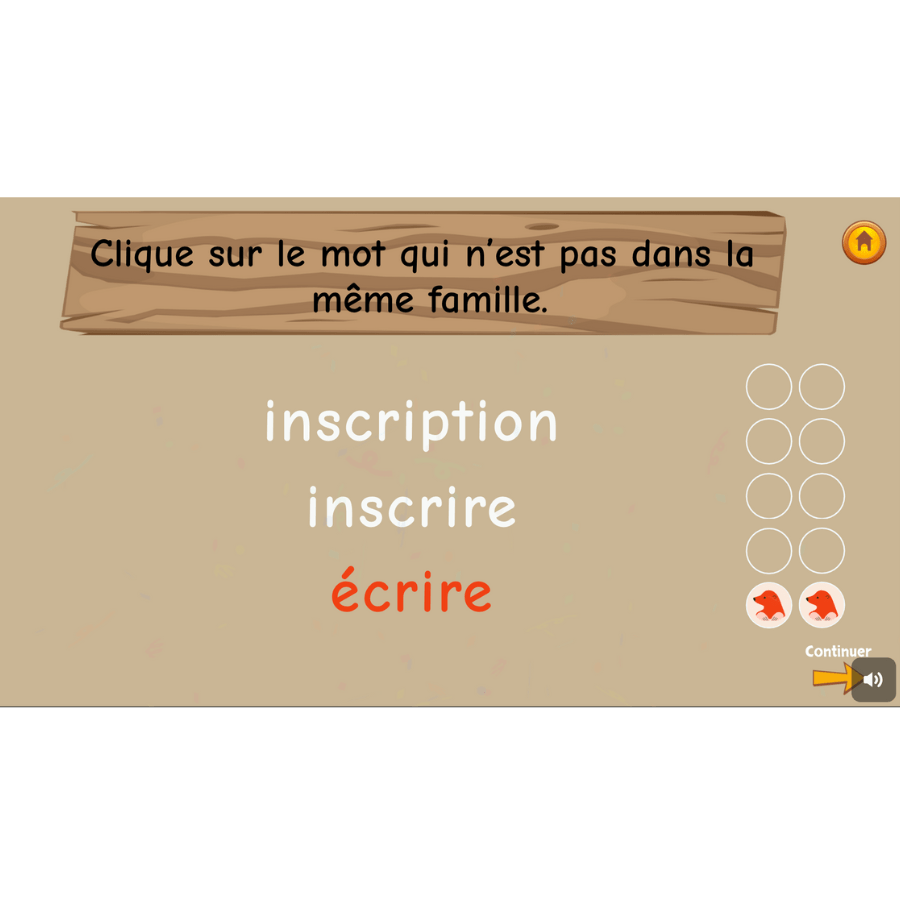 L’univers MorphoExplo, constitué de 3 jeux complet, initie les apprenants à la conscience morphologique grâce à des morphèmes plus faciles à comprendre et à utiliser comme « ette, eur, re, dé »