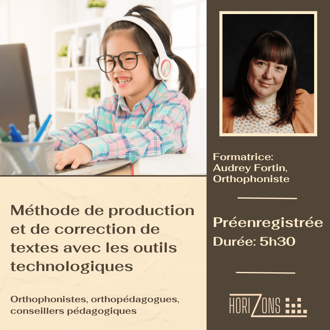 Les orthopédagogues et les orthophonistes sont des intervenants essentiels lors de l’appropriation des aides technologiques en lecture et en écriture. Cette formation permet d’approfondir et de solidifier vos interventions auprès des jeunes utilisant les aides technologiques en écriture.